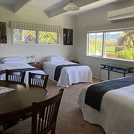 Beds: 1 queen-size, 2 king singles and 1 roll-away on request